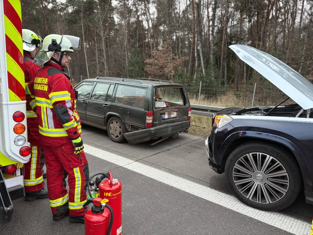 Ein PKW kam nach einem Auffahrunfall an der Mittelleitplanke zum Stehen. Der Fahrer war zunächst im Fahrzeug eingeschlossen und leicht verletzt. Beim Eintreffen der Feuerwehr konnte die Person jedoch selbstständig über die Beifahrerseite aussteigen und wurde anschließend zur weiteren Versorgung an den Rettungsdienst übergeben.