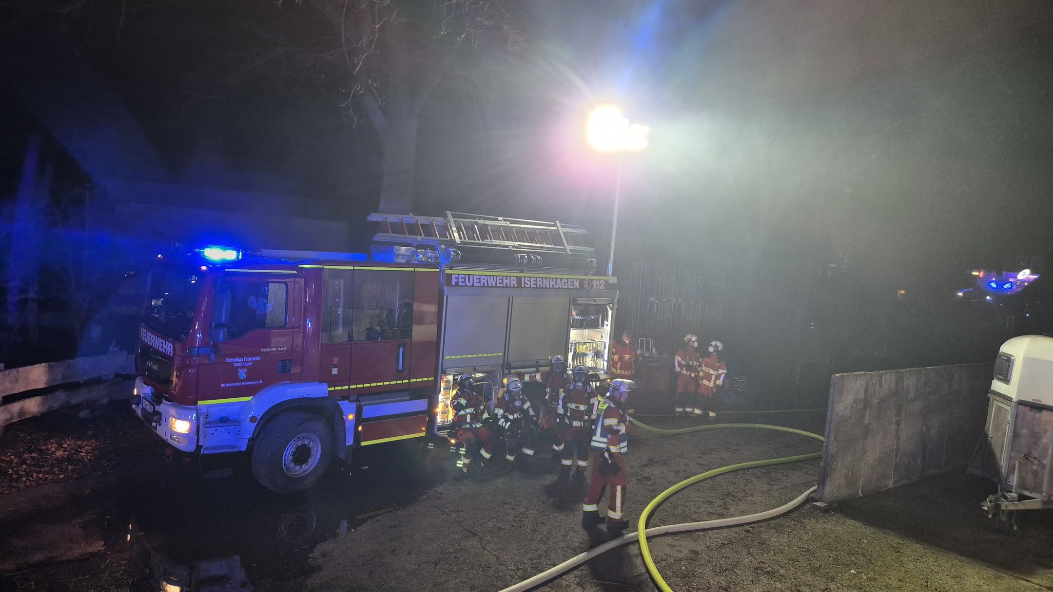 Die Kräfte aus Isernhagen NB leiteten umgehend die Brandbekämpfung ein. Die Drehleiter aus Altwarmbüchen kam zur Brandbekämpfung und später zu den Nachlöscharbeiten im Dachbereich zum Einsatz. Die Feuerwehr Isernhagen HB stellte mit beiden Löschfahrzeugen die Wasserversorgung an der Einsatzstelle sicher.