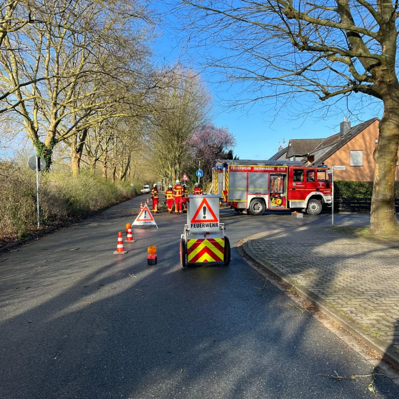 Heute Morgen wurden wir gegen kurz vor 08:00 Uhr mit dem Stichwort h*Hilfeleistung – Baum auf Straße in den Fuchsklint / Ecke Lahriede alarmiert.