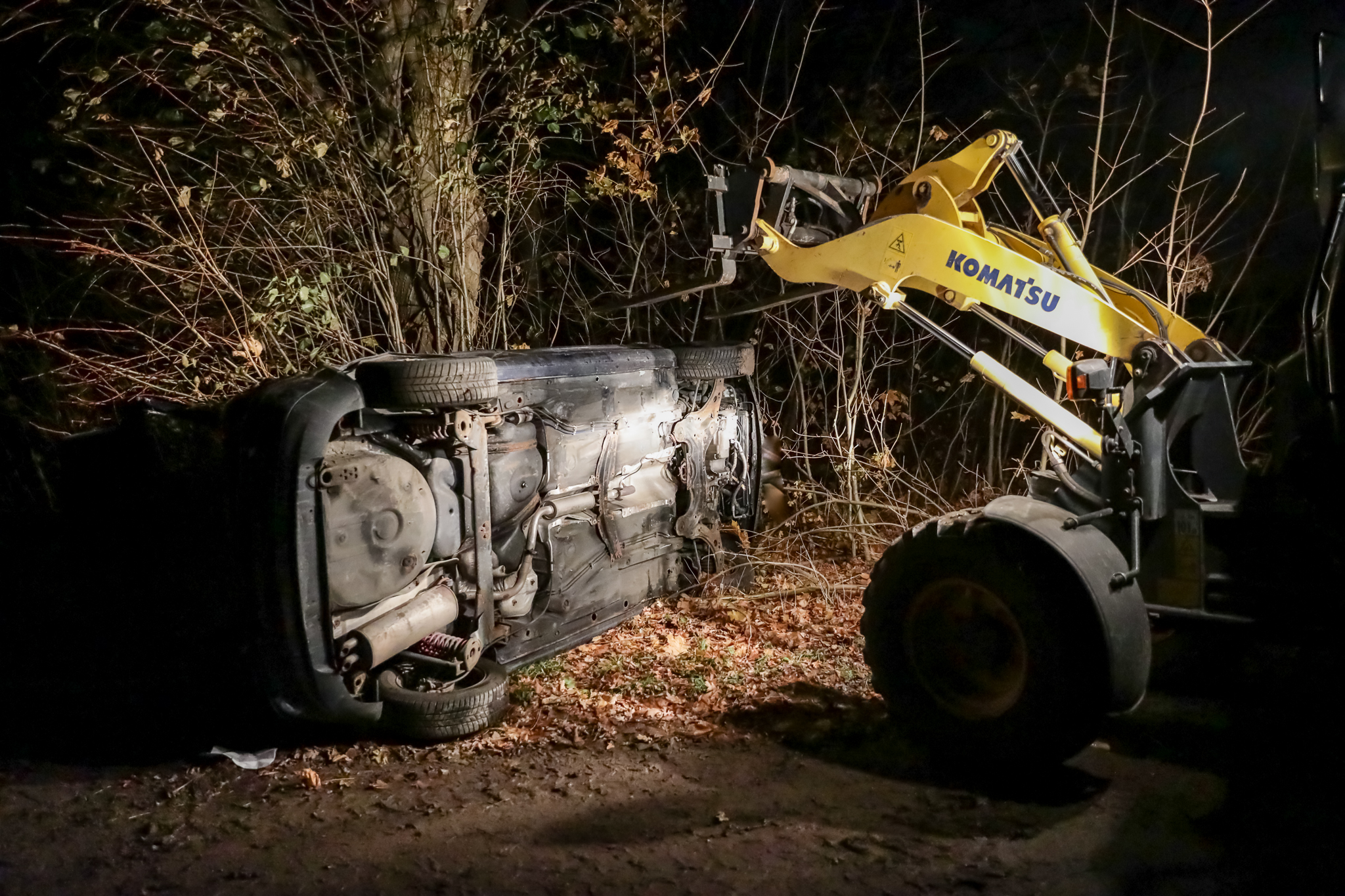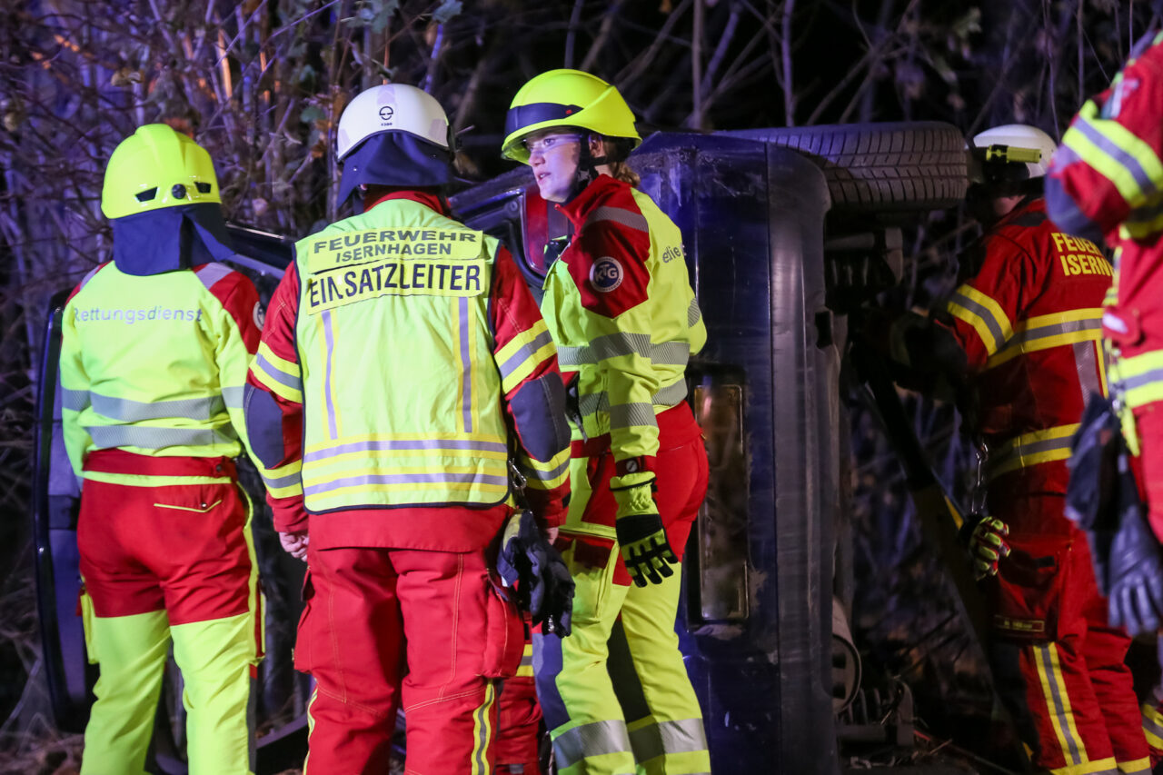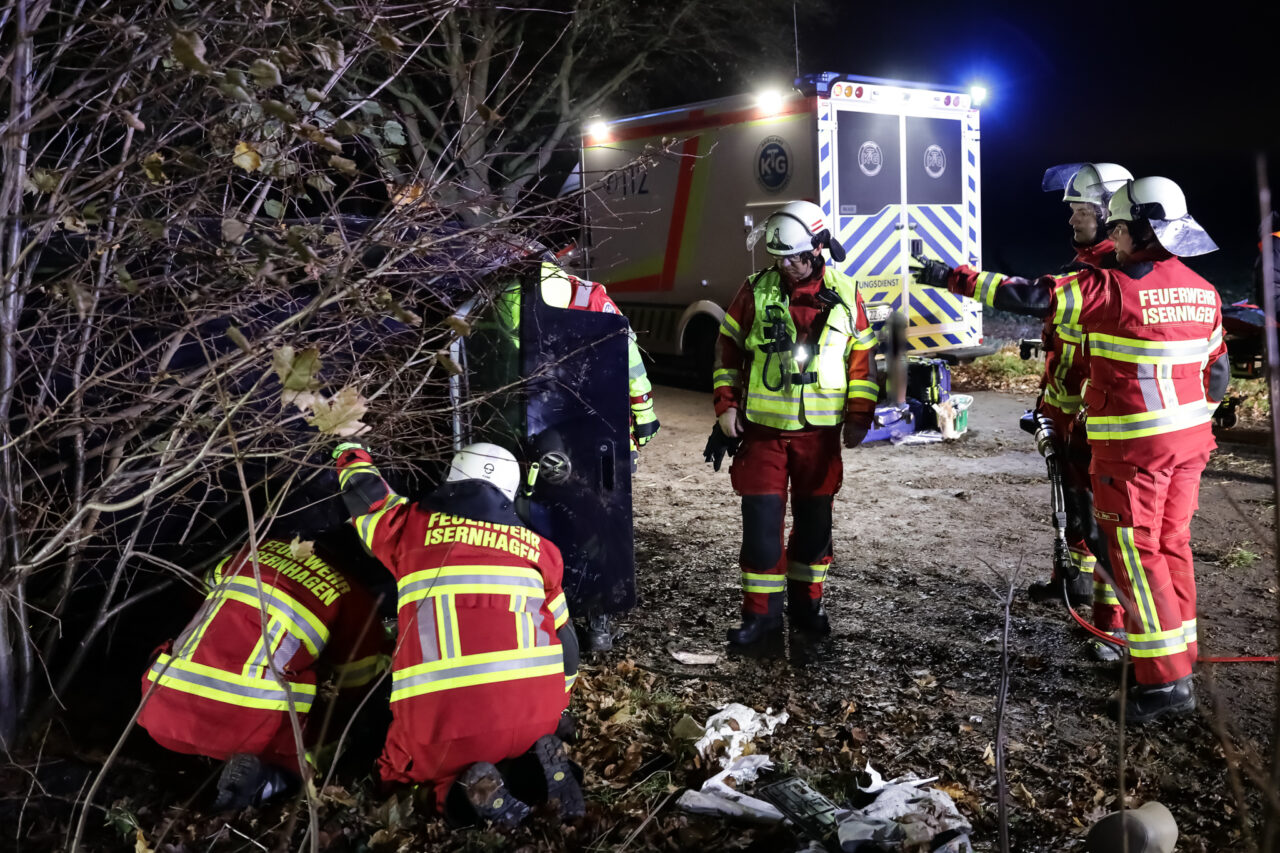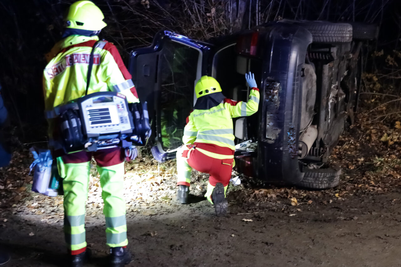 Ein VW Golf 4 war nach einem angenommenen Abkommen von der Fahrbahn auf die Fahrzeugseite gekippt und anschließend mit dem Dach gegen einen Straßenbaum zum Liegen gekommen. Der Fahrer – dargestellt durch Sven Nawroth – war im Innenraum eingeschlossen und mit einem Arm unter der Fahrertür eingeklemmt. Die Anlehnung des PKW am Baum erhöhte die Komplexität der Lage deutlich, insbesondere hinsichtlich Stabilisierung, Zugangsöffnung und Rettungstaktik.