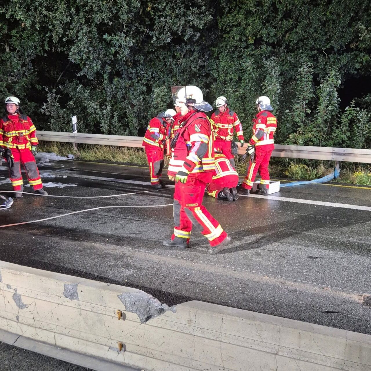 Besonderheit: Unser Löschgruppenfahrzeug steckte im Rückstau fest – direkt dahinter ein Streifenwagen der Autobahnpolizei. Wir brachten daher die Polizeibeamten mit unserem HLF zur Einsatzstelle, damit sie die Unfallaufnahme beginnen konnten. Nach Freigabe der Fahrspur fuhren unsere Einsatzkräfte den Streifenwagen anschließend noch zur Unfallstelle.
